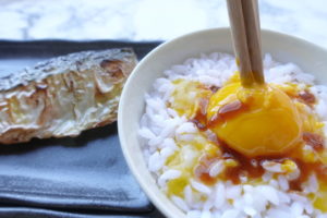 焼きサバと卵かけご飯