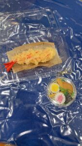 プリンスアラモード、ラーメンキーホルダー、えびの天ぷらキーホルダーでした